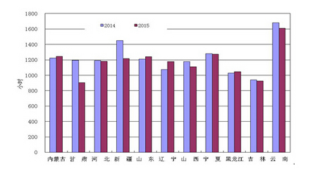 分类型看,1-8月份,全国水电设备平均利用小时2274小时,同比降低25小时;水电装机容量超过1000万千瓦的7个省份中,湖南、青海、四川和云南同比分别下降255小时、128小时、105小时和64小时,湖北增长39小时,贵州、广西同比分别提高303小时、224小时。全国火电设备平均利用小时2925小时,同比下降250小时,降幅比2014年同期扩大112小时;其中海南和宁夏超过3500小时;四川、云南和西藏火电设备利用小时低于2000小时,分别为1974小时、1158小时和57小时;与上年同期相比,共有25个省份火电利用小时同比下降,其中,云南和北京下降超过600小时。全国核电设备平均利用小时4868小时,同比上升57小时。全国风电设备平均利用小时1206小时,同比下降18小时。