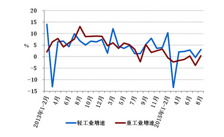 图2: 2013年以来分月轻、重工业用电量增速情况