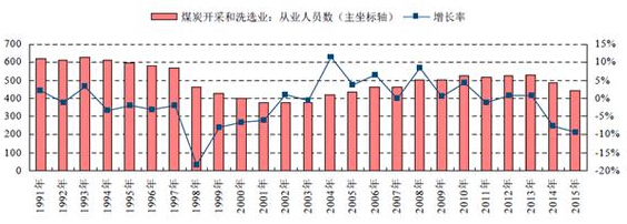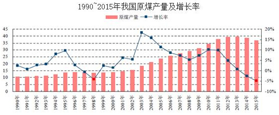自1990年以来,我国原煤产量出现过两次负增长,除了2014、2015近两年外,上一次产量的负增长就出现在1997和1998两年间。截至1998年底,我国原煤产量13.32亿吨,连续两年下降,较1996年的13.97亿吨下降6500万吨。但自1999年起原煤产量再次重新回归正向增长,在2001年以后,原煤产量更是以超过5%的年增长率持续增长。