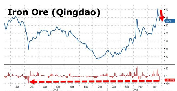 高盛分析师在报告中写道,“过去一个月中,有两个交易日出现了铁矿石期货交易量超过2015年全年进口量(9.5亿吨)的情况。”为了减缓游资热炒大宗商品的行为,大连商品交易所已经宣布,将增加铁矿石交易保证金要求和交易成本。