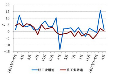 图2: 2014年以来分月轻、重工业用电量增速情况