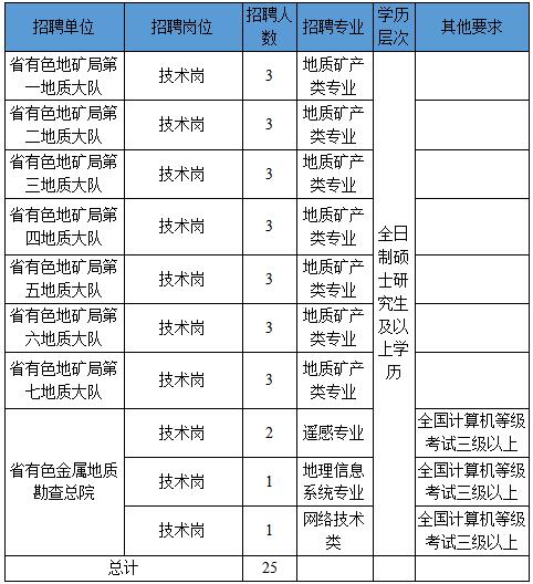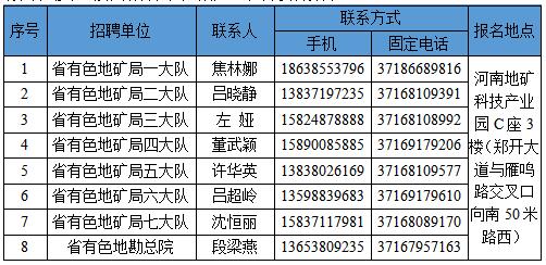 咨询电话:0371—68101820(省有色地矿局人事处)