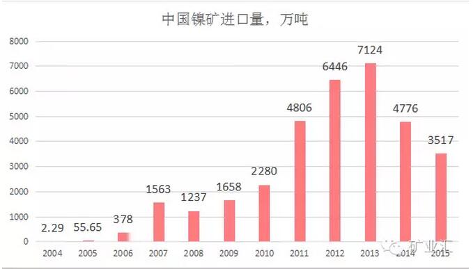 早在2014年,由于印尼镍矿出口受限,使得我国镍矿进口量大减,从2013年的7124万吨缩减至4776万吨,并由此逐年减少。那一年的镍矿市场波动,给国内镍企敲响了警钟,并早早采取了应对措施。