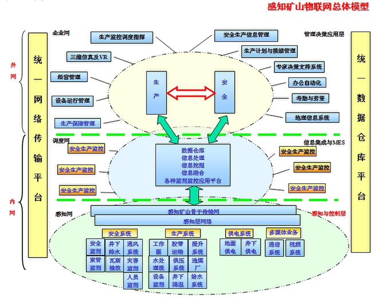 感知矿山产物联网应用系统包括:“安全生产监测监控”、“工业自动化系统”、“灾害预警和安全管理”等。
