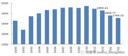 以下为2016年11月以来进口铁矿石库存走势: