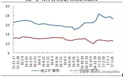 月末使用天数下降,主要是前期限产影响较大,钢厂并未增加对铁矿石的采购。至月末限产影响逐步放开,对铁矿石的日耗增加,进口矿库存出现下降。
