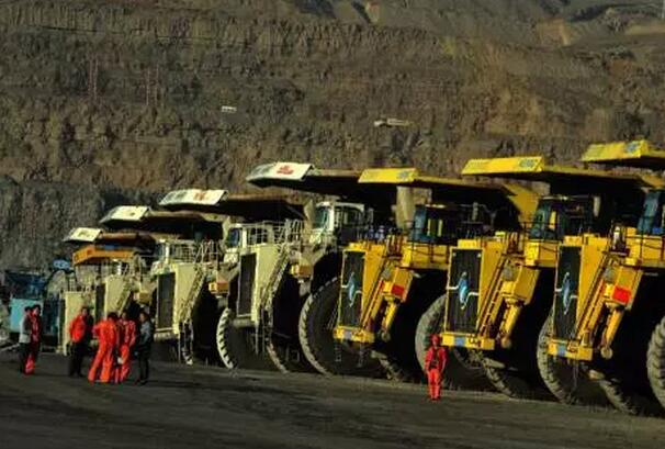 煤矿采用单斗挖掘机追踪开采以及单斗卡车与吊斗铲倒堆作业的露天采矿工艺。每天世界巨无霸级自卸载重卡车组成的超强运输队汇聚此地,这支被誉为“矿山苦力”的钢铁怪兽群体在乌金环境里来往开采奔波,创造着巨大价值。